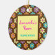 O ornamento do sinal da sala desta menina caracteriza um teste padrão pastel da margarida em um fundo castanho chocolate. Um quadrado amarelo caracteriza no centro o texto customizável que lê: A sala de Samantha, BATE POR FAVOR! Um ornamento adorável para a porta do quarto de alguma menina.