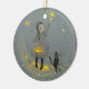 Ornamento De Cerâmica Garota e Gato na Lua e Estrelas
