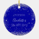 Um ornamento para um aniversário de 21 ruas (ou qualquer idade) feminino e glamouroso. Um fundo azul real com falso brilho prateado, brilhos. Na frente: Personalize e adicione uma data, um nome e uma idade.