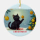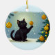 Este gatinho preto é um Natal adorável com todos os enfeites de árvore que o esperam e que se batam por aí. Que divertido!