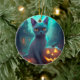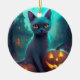 Ornamento De Cerâmica Gato Azul Russo Halloween Com Pumpkins Assustado