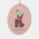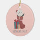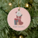 Ornamento De Cerâmica Gato branco bonito nas Meias de Natal