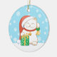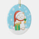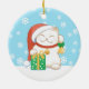 Ornamento De Cerâmica Gato Branco de Natal num Chapéu Vermelho