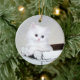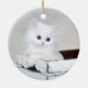 Gato persa branco adorável numa caixa branca esbranquiçada e um gato de fundo pastel adora adoram ornamento