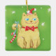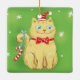 Ornamento De Cerâmica Gato de Natal de Desenho Animado Fofo com Chapéu d
