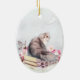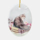 Gatinho persa senta sobre livros cor-de-rosa suavemente abraçados (com uma dobradiça de rosa sobre o pelo) gato e/ou amantes de livros ornamento oval