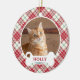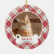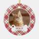 Ornamento De Cerâmica Gato Personalizado de Tartan Natal Checado Vermelh