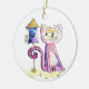 Ornamento De Cerâmica Gato Sneaky Bastante Bestial com Birdhouse