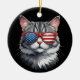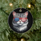 Ornamento De Cerâmica Gato Vestindo óculos escuros bandeira americana 4º