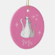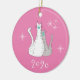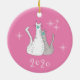 Ornamento do Natal de 2020, com uma cinza e gatos brancos com mesa encaram máscaras design num fundo rosa. Acentuado com flocos de neve, este item bonito tem uma inscrição personalizável branca, se você optar por mudar o ano.