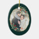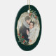 O Enfeites de natal fotográfico elegante apresenta uma foto favorita rodeada por uma falso estrutura geométrica oval de folha de ouro com folhagem de cor verde-d'água e bagas vermelhas. Adicione seus nomes e o ano, ou uma mensagem personalizada, ao lado inverso em um delicado quadro geométrico correspondente.