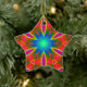 Um atraente padrão geométrico/design em tons de vermelho, azul, verde, amarelo e roxo com um tipo de flor como o motif.