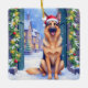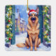 Ornamento De Cerâmica German Shepherd Snowy Town Gate Santa Christmas