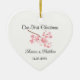 A cereja floresce sob o ornamento das flores rosa. O nosso primeiro Natal. Você pode personalizá-lo com seus nomes.