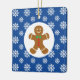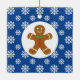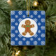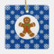 Este ornamento cerâmico de Natal retrata um homem de gengibre cercado por um padrão de flocos de neve sobre fundo azul. É uma boa adição aos vossos decores de Natal.