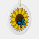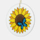 Ornamento De Cerâmica Girassol e Borboleta Azul