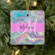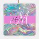 Ornamento De Cerâmica Girly Rainbow Holographic Nome do Monograma Irides