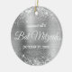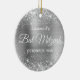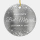 Crie seu próprio ornamento do círculo do morcego mitzvah para sua filha. Você pode personalizar o texto do bloco ou o texto da caligrafia ou o estilo da fonte. O fundo da arte digital apresenta uma falso cintilação prateada e uma película de cinza prateada. Na parte de trás, você pode adicionar uma foto de família se quiser. Enfeite de aniversário de 12 da menina.