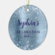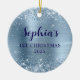 Ornamento De Cerâmica Glittery Light Blue Foil 1st Christmas Photo