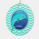 Ornamento De Cerâmica Golfinho; Aqua Green Chevron