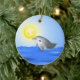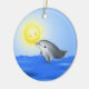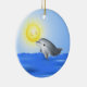 Bebê Dolphin nadando na água azul do oceano e brincando com a ilustração digital da charge do sol.