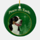 Paz na Terra. Mostre sua razão para a temporada com seu Cachorro da Grande Montanha Suíça neste design exclusivo de cães acentuado com verde e ouro. Vai excelente num ornamento para a árvore de natal.