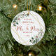 Ornamento De Cerâmica Greenery Nosso Primeiro Natal como Sr. & Sra.