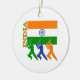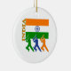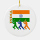Três mostraram em silhueta jogadores indianos do grilo sob a bandeira indiana com o nome de país India ao longo do lado.