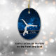 Este adorno elegante apresenta um ginasta prateado da silhueta durante um palanque contra um bonito fundo azul com minúsculas luzes estelares. O nome dela está em prata em um banner semitransparente que está emoldurado em cintilação branca. A parte traseira do ornamento tem o mesmo plano de fundo azul com três campos de texto personalizados no centro de um banner de moldagem em losango de falso rico. Perfeito para aquela filha, neta ou sobrinha que é ginasta.