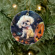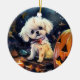 Ornamento De Cerâmica Halloween Bichon Frise Com Pumpkins Assustado