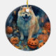 Ornamento De Cerâmica Halloween Chow Chow Com Pumpkins Assustado