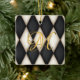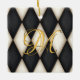 Ornamento De Cerâmica Herlequin Preto e Branco Faux Monograma Antiquado