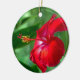 Nesta imagem impressionante, uma flor vermelha de hibisco é destacada contra um fundo verde molhado.