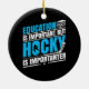 Engraçado ornamento temático de hóquei com textos azuis e brancos em fundo negro, com a seguinte frase: Educação é importante, mas hóquei é importante!