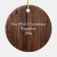 Ornamento De Cerâmica Holly Wreath First Christmas Casal Wedding Photo