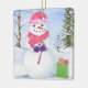 Ornamento De Cerâmica Homem de neve com cachecol rosa e canas doce