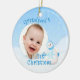 Seu neto vai estimar seu ornamento de boneco de neve de natal de 1rua com sua foto. Este adorável chuveiro está escondido em um chapéu azul felpudo, cachecol e luvas enquanto flocos de neve delicados caem pelo céu de inverno. Adicione foto à frente e nome e ano à parte traseira do ornamento usando o modelo fornecido. Nos especializamos em designs feitos por medida, entre em contato conosco se você quiser um layout único de Natal feito por encomenda de 1rua usando este design de boneco de neve.