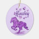 Personalize este Enfeites de natal de Cavalo "Um Tipo"! Ele apresenta uma Silhueta de Cavalo Galopante em Flores Bonitas, cercadas por Corações Roxos! Design De Arte Original Pelo Artista Kerry Miller.