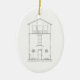 Tinta Home nova que tira ornamento cerâmico oval frente e verso Natal novo preto e branco da casa do primeiro. Mantenha a tiragem da casa na parte dianteira ou transfira arquivos pela rede sua própria imagem. Todo o texto sobre para trás pode ser personalizado. Esta imagem é de minha tinta original no desenho da mão de mylar de uma casa de campo rústica pequena com encantamento de detalhes arquitectónicos e a pedra pequena benches cada lado da porta.