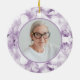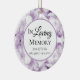 Honre o seu amado que partiu com as bonito Flores de Hydrangea Watercolor Memorial KeepsasRound Cerâmica Ornament. Personalize-o com o nome do falecido, as datas de nascimento/morte e a imagem no verso. Este elegante ornamento personalizado de tributo de flores apresenta uma coloração digitalmente aquosa pintada por fotografia floral de pétalas de flores de hidrangea, púrpura, com fundo branco. O texto lê na memória de amor.