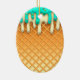 Ornamento De Cerâmica Ice Cream Drip Waffle Cone Mint With Sprinkles