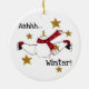 Um boneco de neve com skates de gelo longos e vermelhos enquanto rodeado por estrelas ouros e texto lê "Aahhh... Winter!" no nosso Gce Skating Snowman mantém o ornamento de feriado.