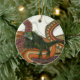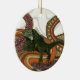 Figura verde ilustrada iguana e paisagem da floresta tropical abstrato, originalmente desenhada a tinta.