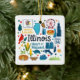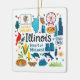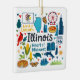 Commemorate your trip to the state of Illinois with this modern keepsake Christmas ornament, featuring hand-drawn style illustrations of iconic food, animals, landmarks, landscapes, and culture. Personalize the back to mark your US adventure and create a memory you'll hang up on the tree for the Holidays year after year.