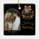 Elegante Black e Dourada decoração de fotos de Natal Cerâmica. Celebre a estação com elegância! Esse Enfeites de natal apresenta um ouro luxuoso e ornamento preto, acrescentando um toque de sofisticação. Sua foto favorita é lindamente enquadrada em uma forma de arco graciosa, enquanto seu nome de família é exibido de forma destacada, fazer este ornamento é uma manutenção personalizada para os feriados.