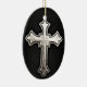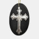Cruz do metal no fundo de couro preto