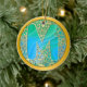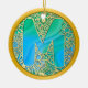 Ornamento De Cerâmica Initial Monogram M Christmas - Gold, Teal & Blue