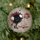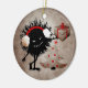 Enfeites de natal mau com textura escura com um inseto preto mau que segura um presente de Natal com fita vermelha. Mesmo em sua maldade, é tão gentil quanto dar presentes. Ao lado do personagem mau há uma árvore de Natal, com bolas de Natal vermelhas e uma estrela vermelha. Este ornamento de personagem mau tem o texto personalizável "Feliz Natal" e fará um presente de Natal excelente para alguém que ama estilo gótico e personagens de desenho animados engraçados.
