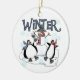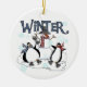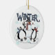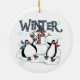 Dois pinguins e um skate de gelo de boneco de neve e texto lê "Inverno" em um ornamento de guardião que é perfeito para qualquer um que ama pinguins e homens de neve!
