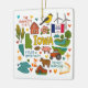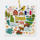 Commemorate your trip to the state of Iowa with this modern keepsake Christmas ornament, featuring hand-drawn style illustrations of iconic food, animals, landmarks, landscapes, and culture. Personalize the back to mark your US adventure and create a memory you'll hang up on the tree for the Holidays year after year.
